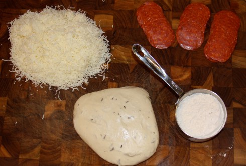 - pizza dough (any kind, i used rosemary focaccia for more flavor)