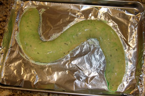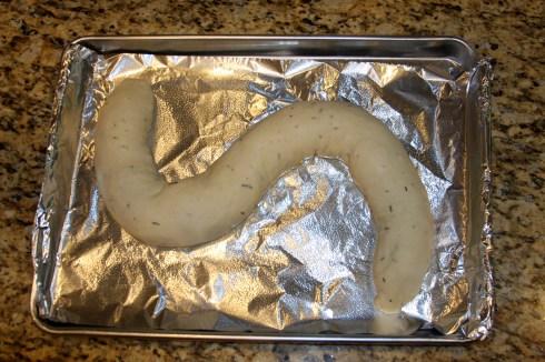 – form into an “s” on your greased sheet pan, seam side down